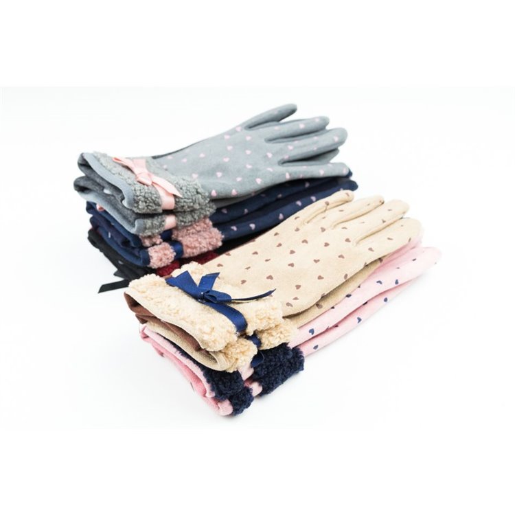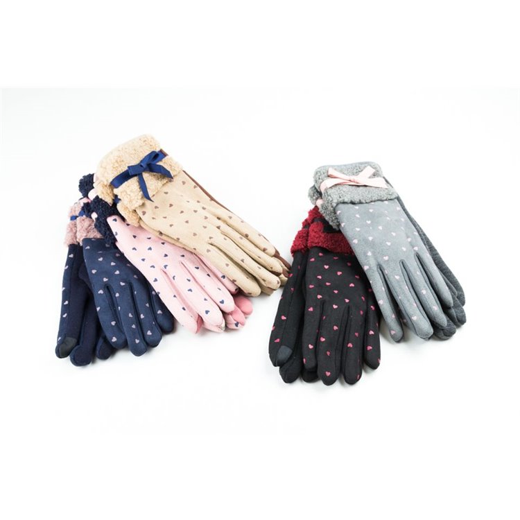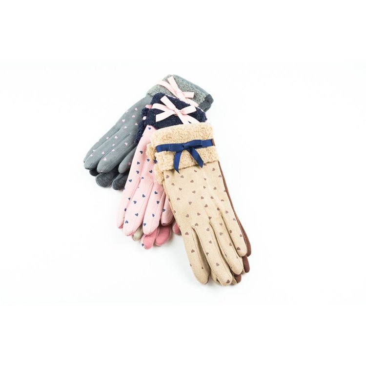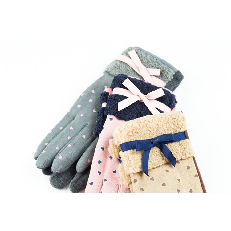 Urocze, ciepłe rękawiczki w serduszka, zdobione kokardką. Idealne na zimę!Do wyboru w różnych kolorach.Prawa rękawiczka posiada na wskazującym palcu specjalną nakładkę umożliwiającą używanie telefonów dotykowych.Nadadzą każdej zimowej stylizacji wyjątkowego charakteru.Skład: 30% wełna70% akryl
