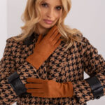 Eleganckie rękawiczki damskie wykonane z połączenia dwóch różnych materiałów. Kciuk oraz palec wskazujący z haftowanym kwiatkiem, umożliwiający obsługę telefonu, bez potrzeby ściągania rękawiczek.