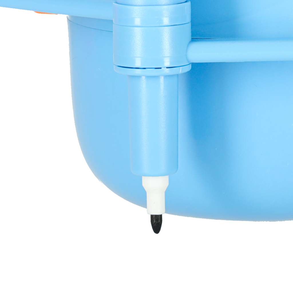 Robot rysujący dla dzieci 3+ z akumulatorem 2400 mAh (ładowanie 4,2 V przez USB). Kolor niebiesko pomarańczowy. Po wsunięciu karty i mazaka automatycznie odtwarza 1 ze 100 wzorów. Obsługa w j. angielskim. Stabilna, gumowa podstawa.