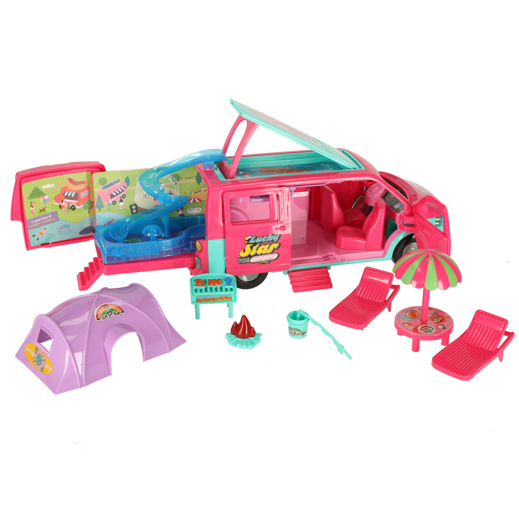 Samochód dla lalek kempingowy kamper akcesoria lalka basen