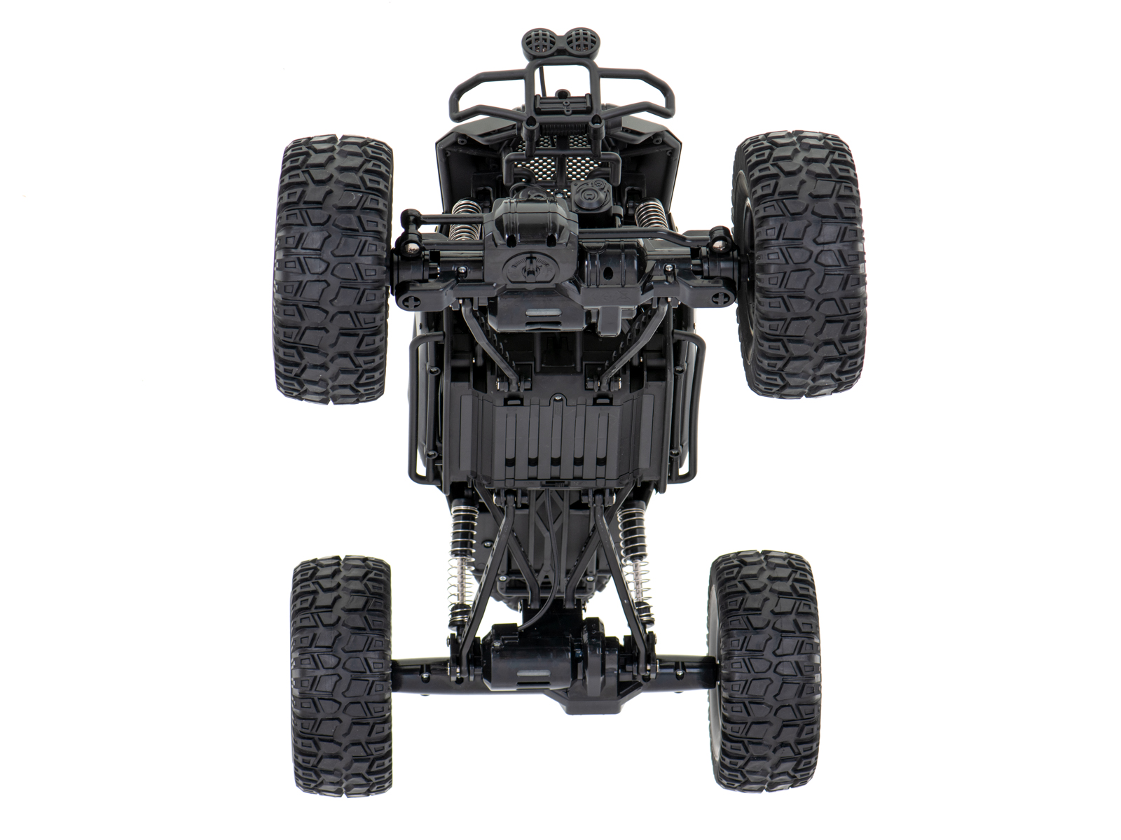 Duży samochód zdalnie sterowany RC Rock Crawler w skali 1:8. Posiada napęd na 4 koła. Dzięki gumowym oponom i sprężynowemu zawieszeniu pokona każdą nawierzchnię. Posiada diody LED. Pilot-pistolet umożliwi łatwość sterowania. Wymiary: 51x30x31cm.