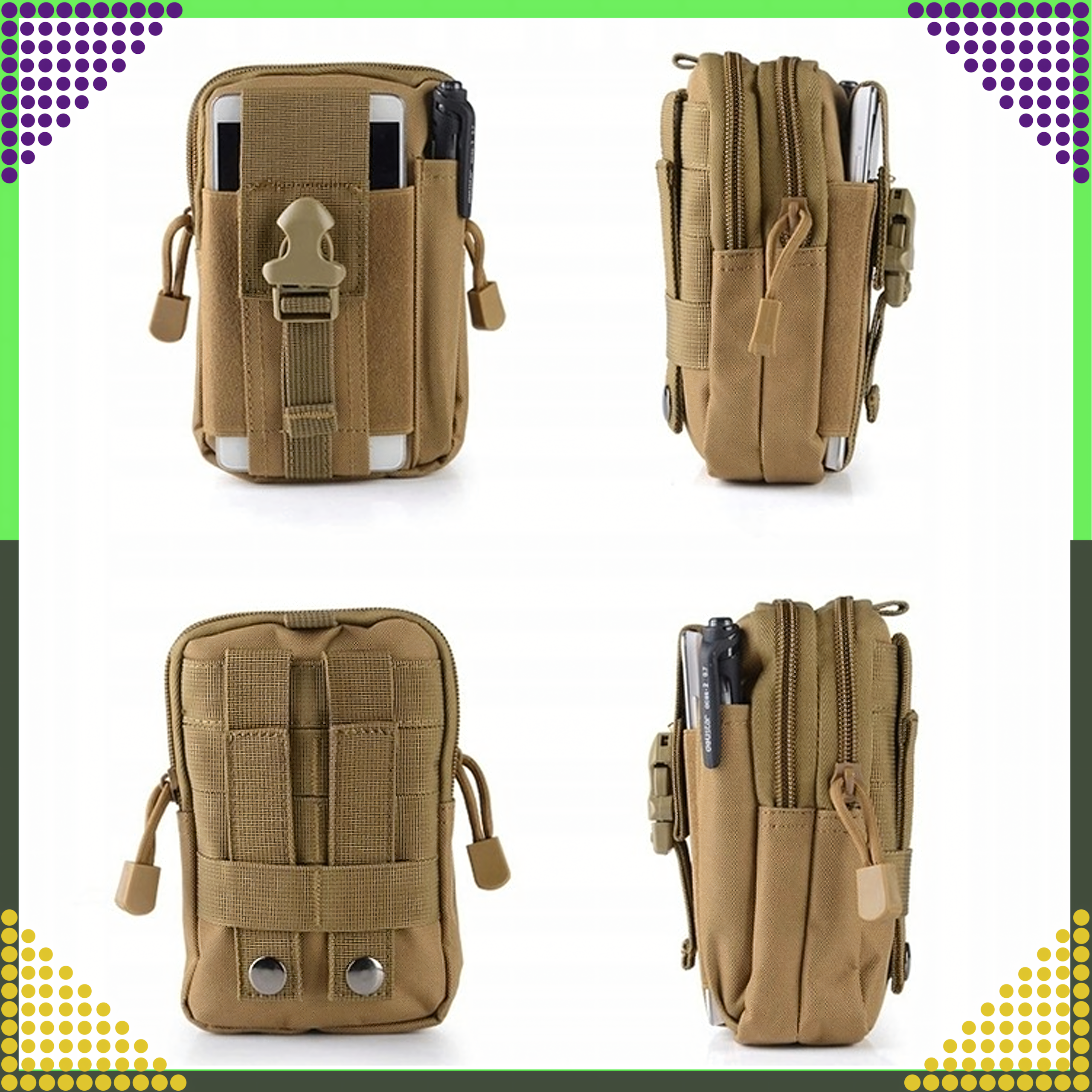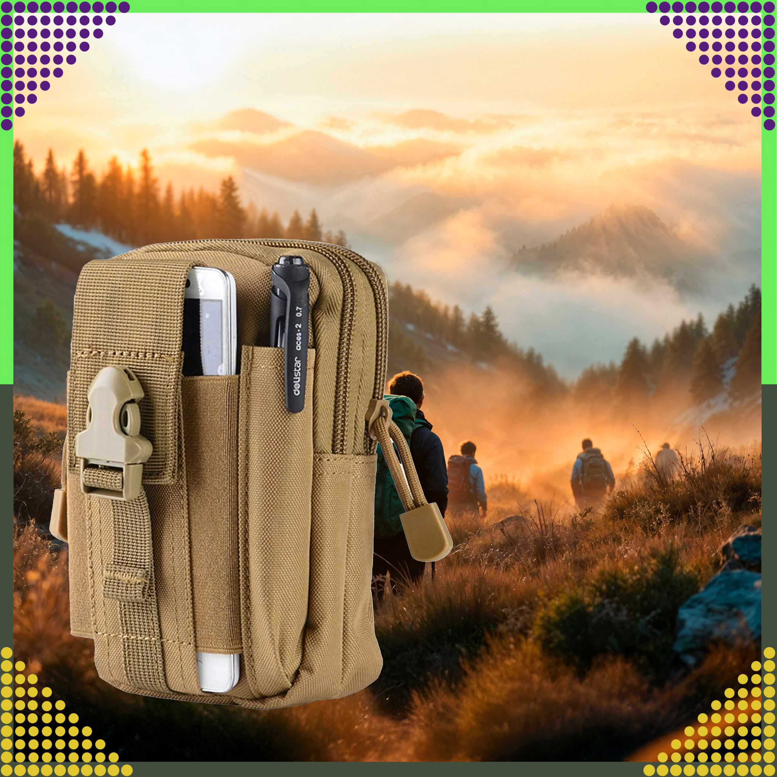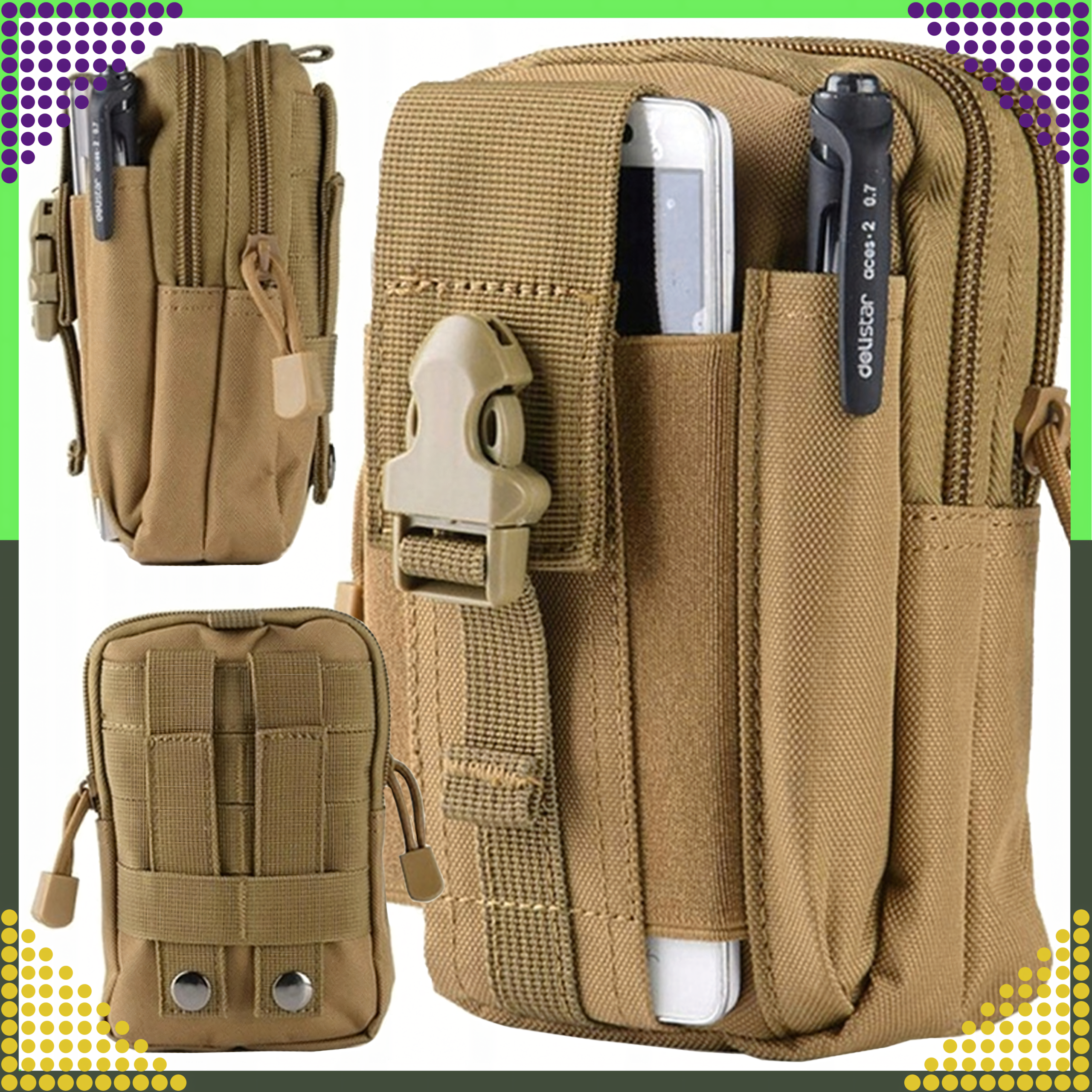 ✔️ DWIE KIESZONKI – jedna elastyczna, przeznaczona na smartfon (pasuje do większości modelów) druga na długopis taktyczny