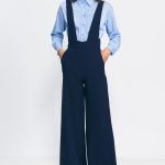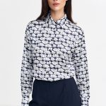 Body o regularnym kroju, wykonane z materiału z granatowo białym wzorem o satynowym efekcie, który dodaje elegancji i subtelnego blasku. Posiada klasyczny kołnierzyk oraz długie rękawy zakończone mankietami, co nadaje całości ponadczasowego stylu. Zapięcie z przodu na guziki oraz zatrzaski w kroku zapewniają wygodę i łatwość noszenia. Dolna część, czyli majtki, wykonane są z elastycznego materiału, co gwarantuje idealne dopasowanie do sylwetki i komfort przez cały dzień. To body łączy w sobie klasyczny design z nowoczesnym wykończeniem, tworząc uniwersalny element garderoby.