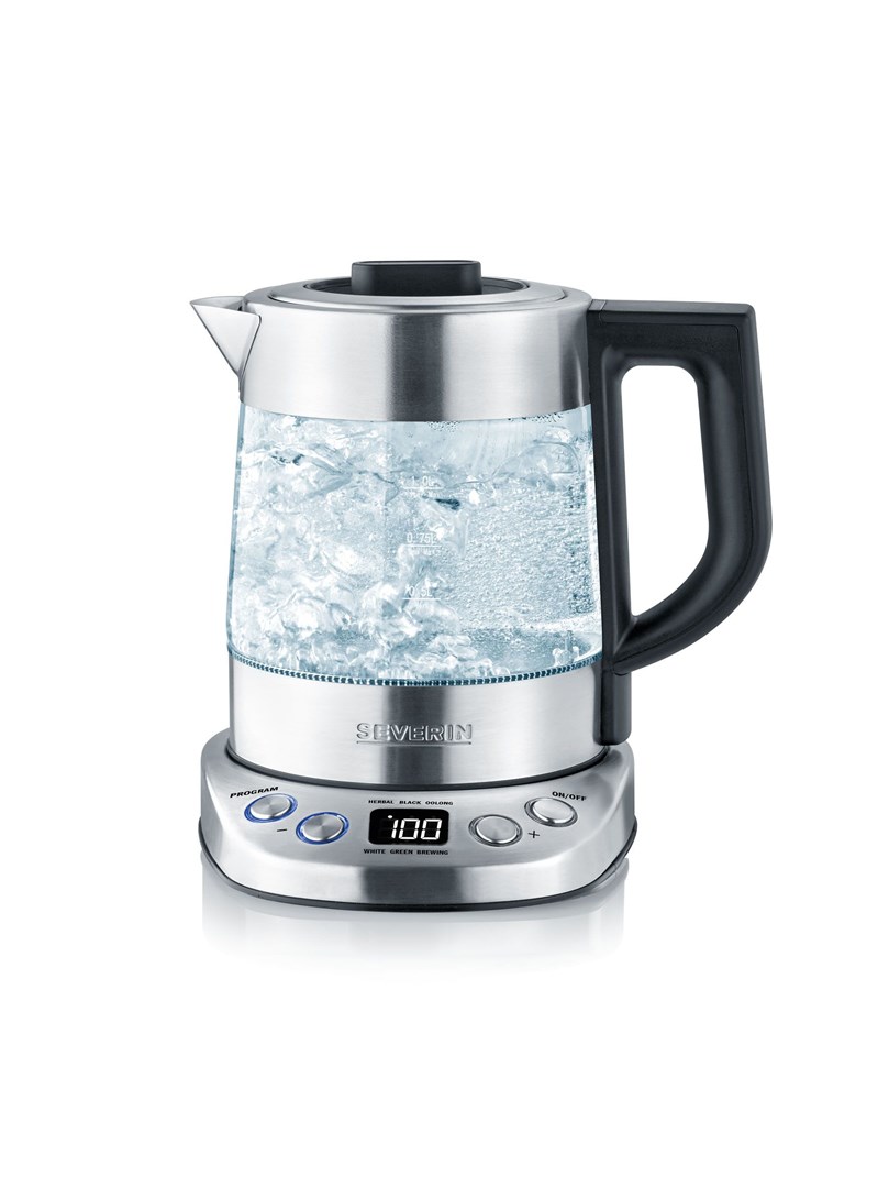 SEVERIN CZAJNIK ELEKTR. SZKŁO-STAL, REGULACJA TEMP. W PODSTAWIE, AUT. PROGRAMY, SITKO DO HERBATY, POJ. 1 L, MOC 2200W WK3473