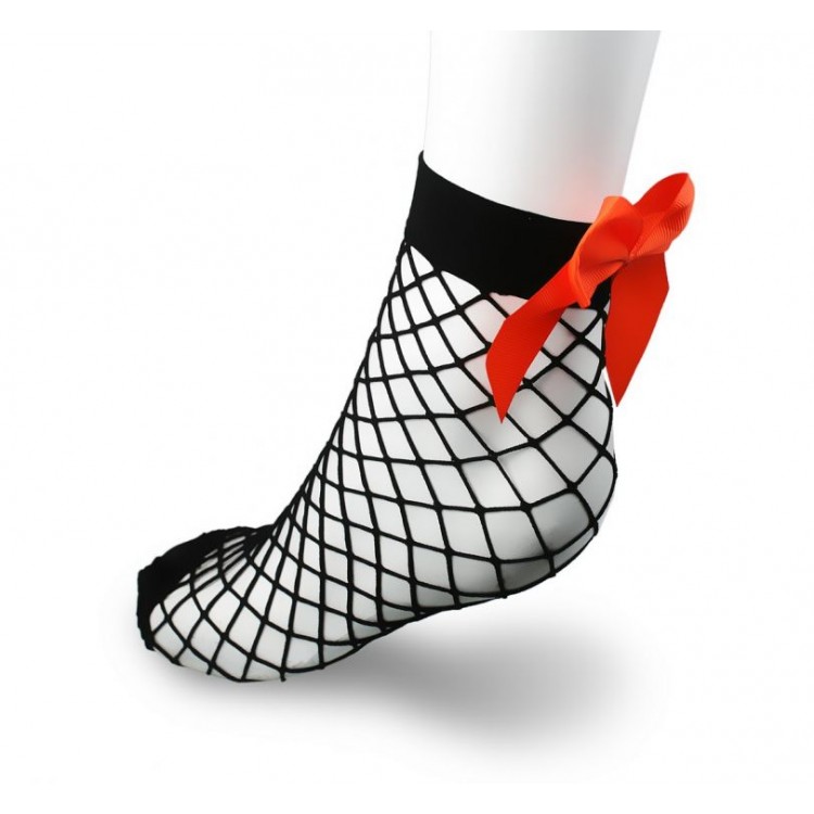 Skarpetki kabaretki z dużymi oczkami i uroczą kokardką z tyłu.