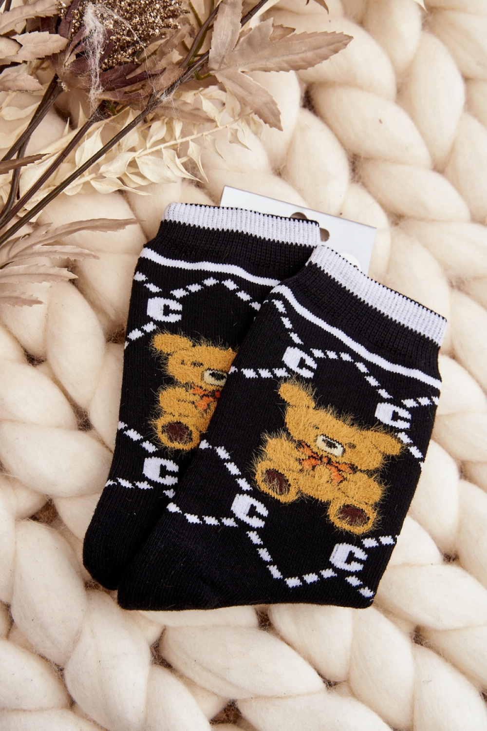 Ciepłe skarpety damskie idealne na mroźne dni. Model z naszywką w postaci misia. Lekki ściągacz sprawi, że będą idealnie dopasowane do tęgości nogi. Koniecznie powinnaś je mieć!