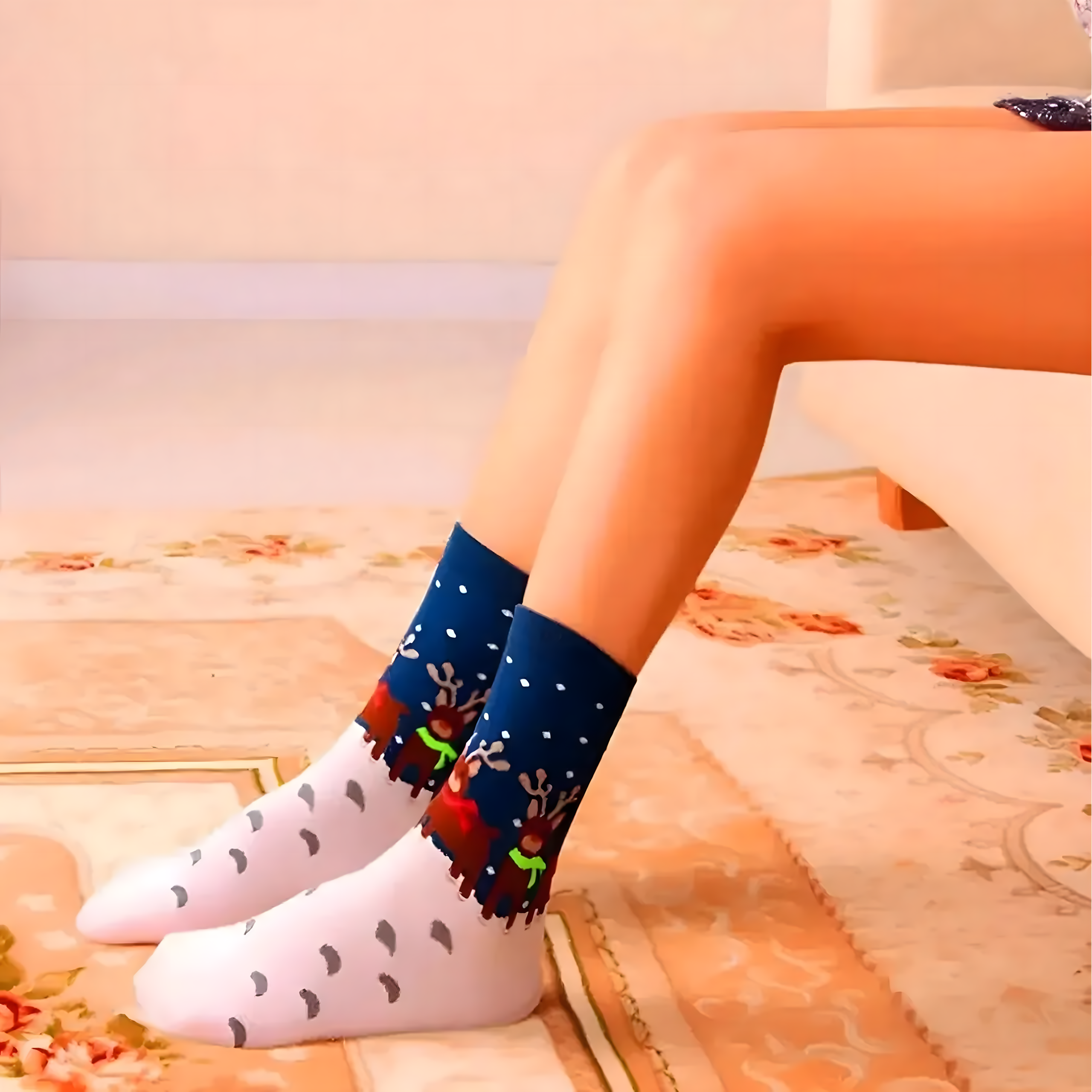 Zestaw 5 par świątecznych skarpet bawełnianych to idealny wybór na zimowe dni oraz świetny prezent pod choinkę czy na Mikołajki. Wykonane z wysokogatunkowej bawełny, są miękkie, oddychające i przyjemne w dotyku. Kolorowe wzory – renifery, choinki, płatki śniegu – od razu wprowadzają bożonarodzeniowy klimat i poprawiają nastrój.