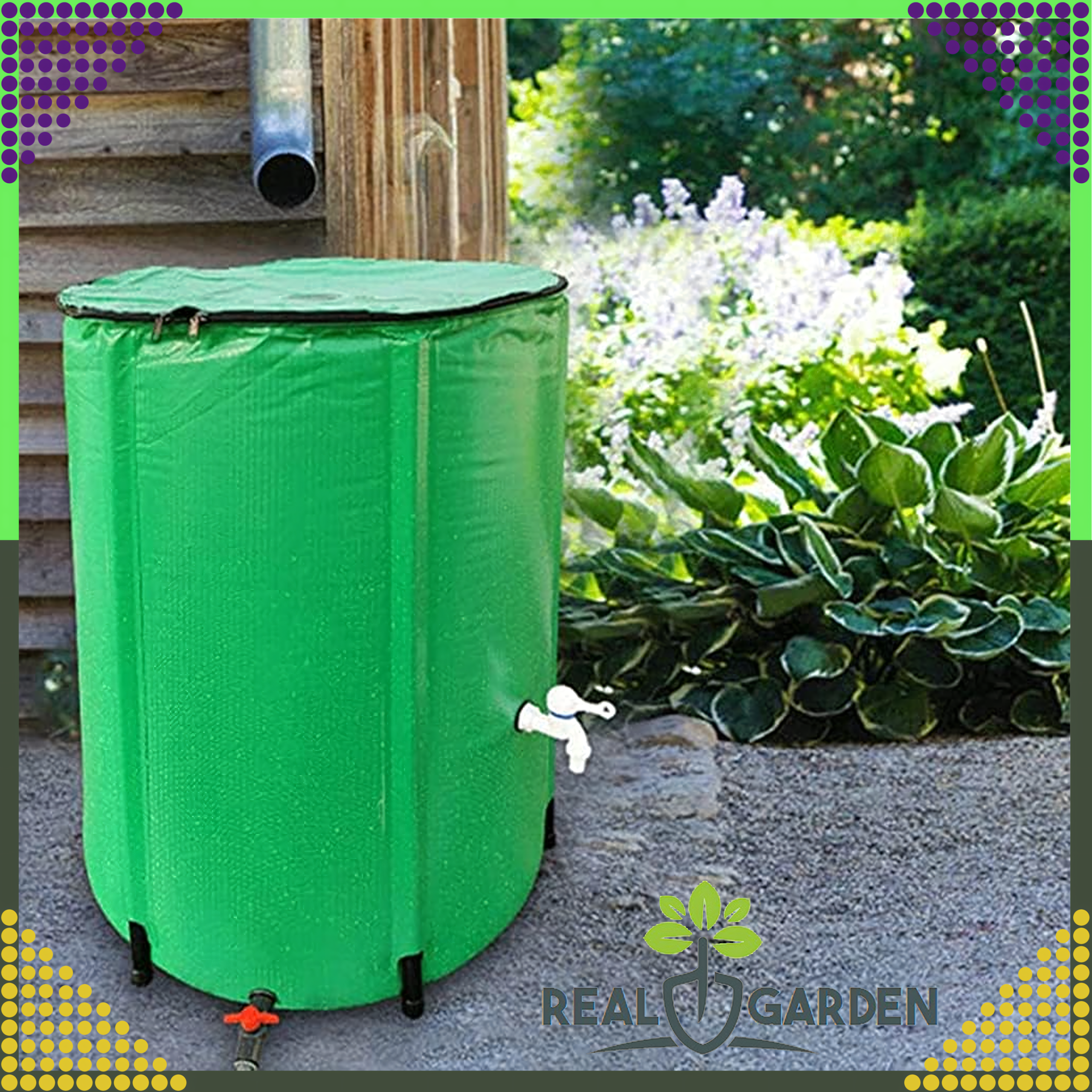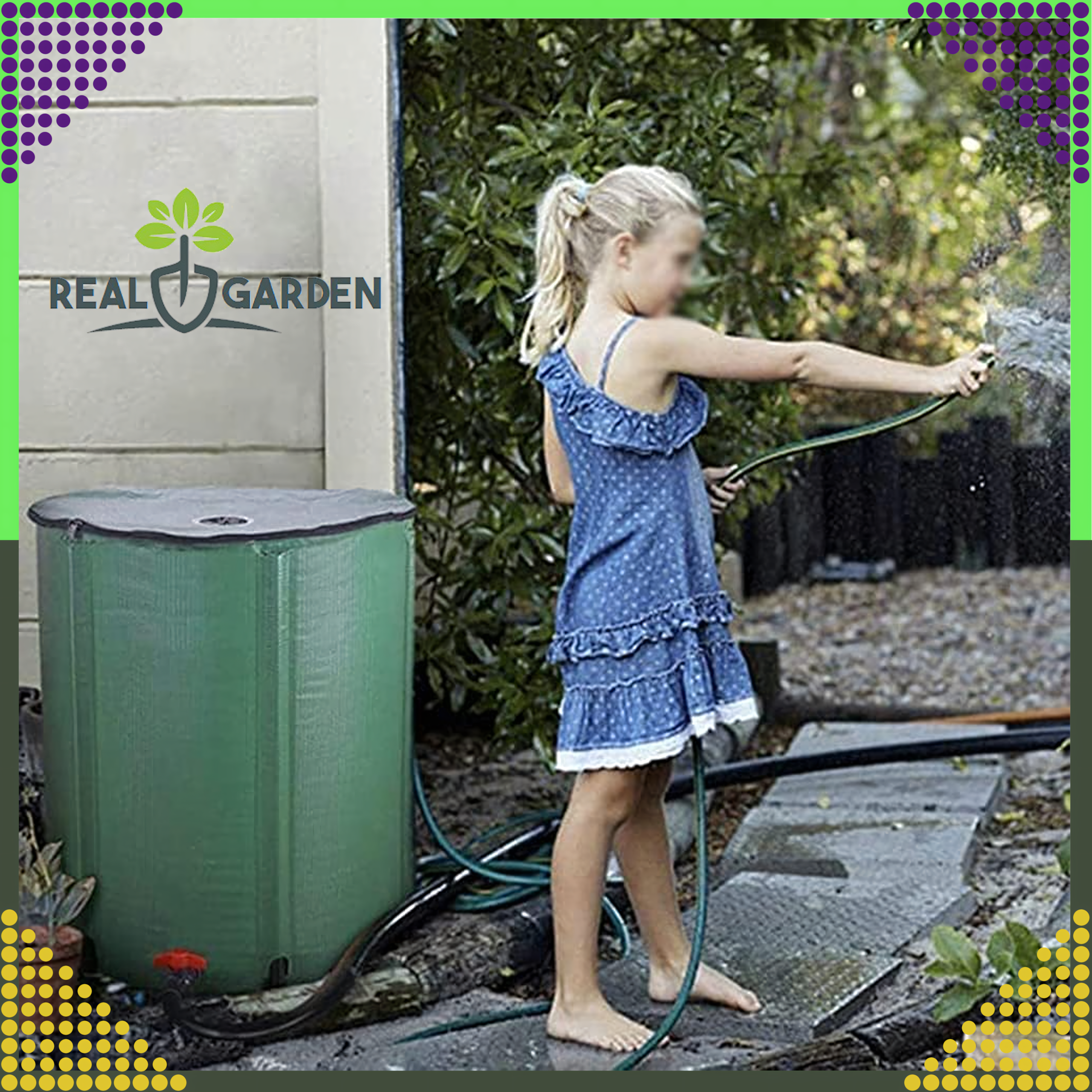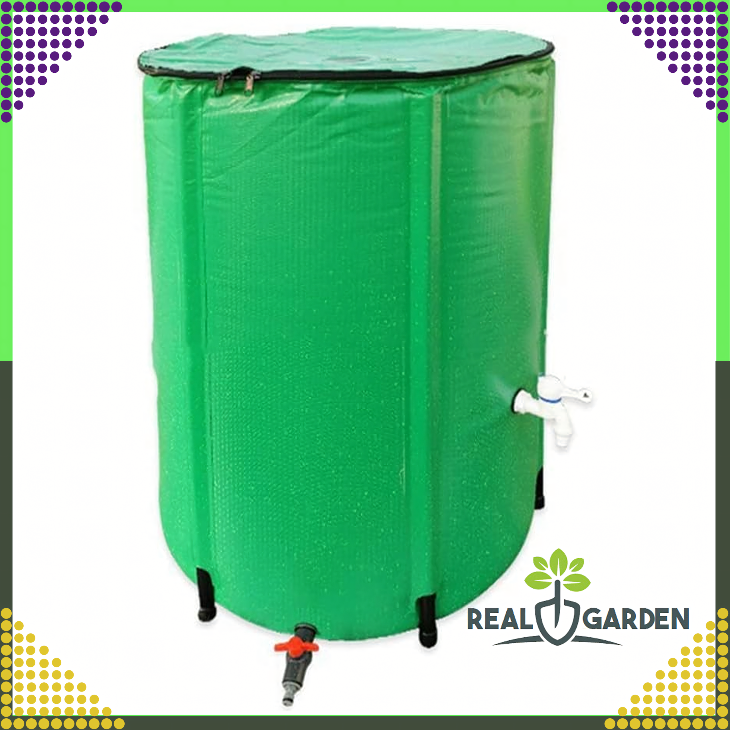 Składany, elastyczny zbiornik na deszczówkę z wbudowanym kranem i zaworem przelewowym. Przeznaczony do zbierania wody spływającej np. z rynien, której można następnie użyć np. do podlewania ogrodu, roślin doniczkowych czy mycia samochodu.