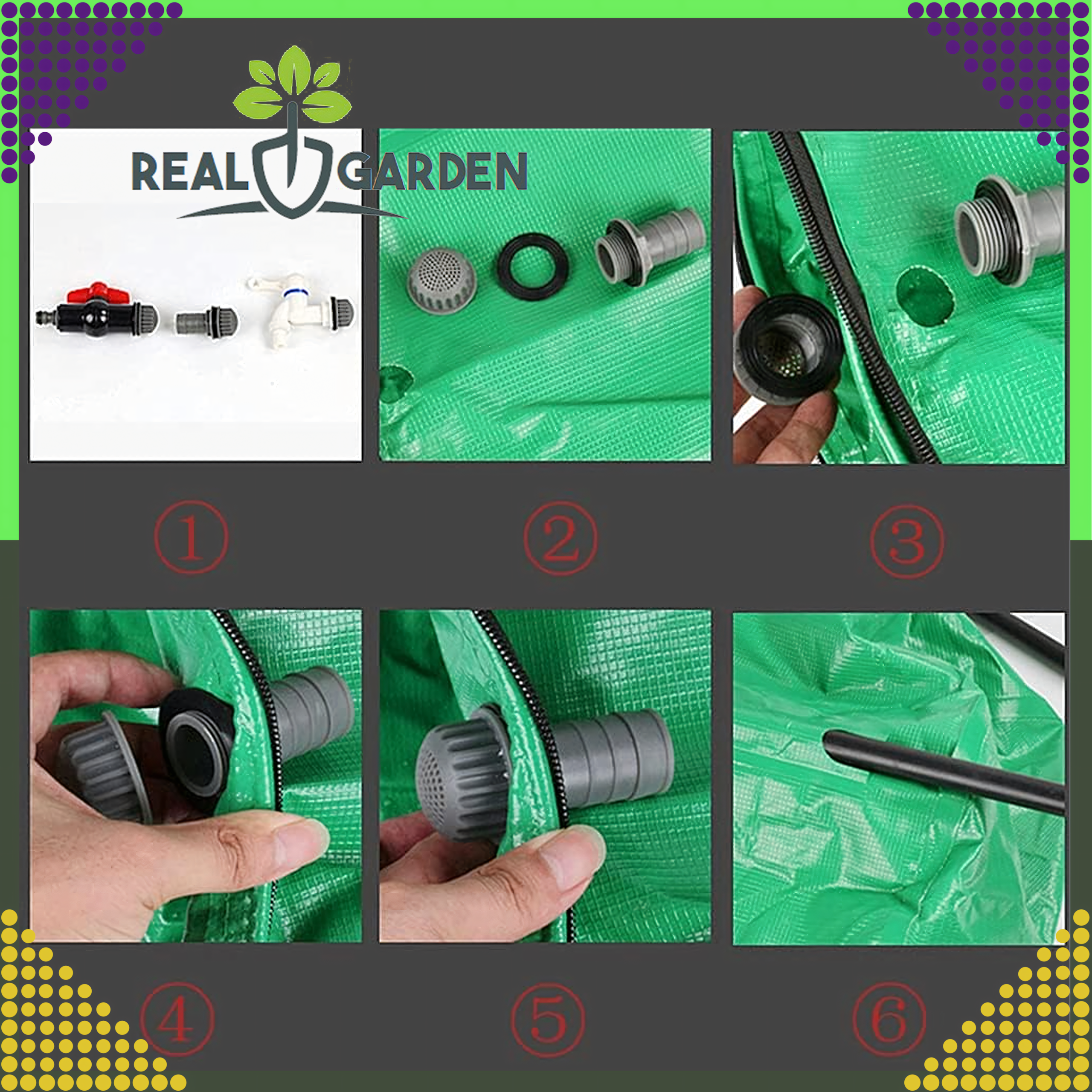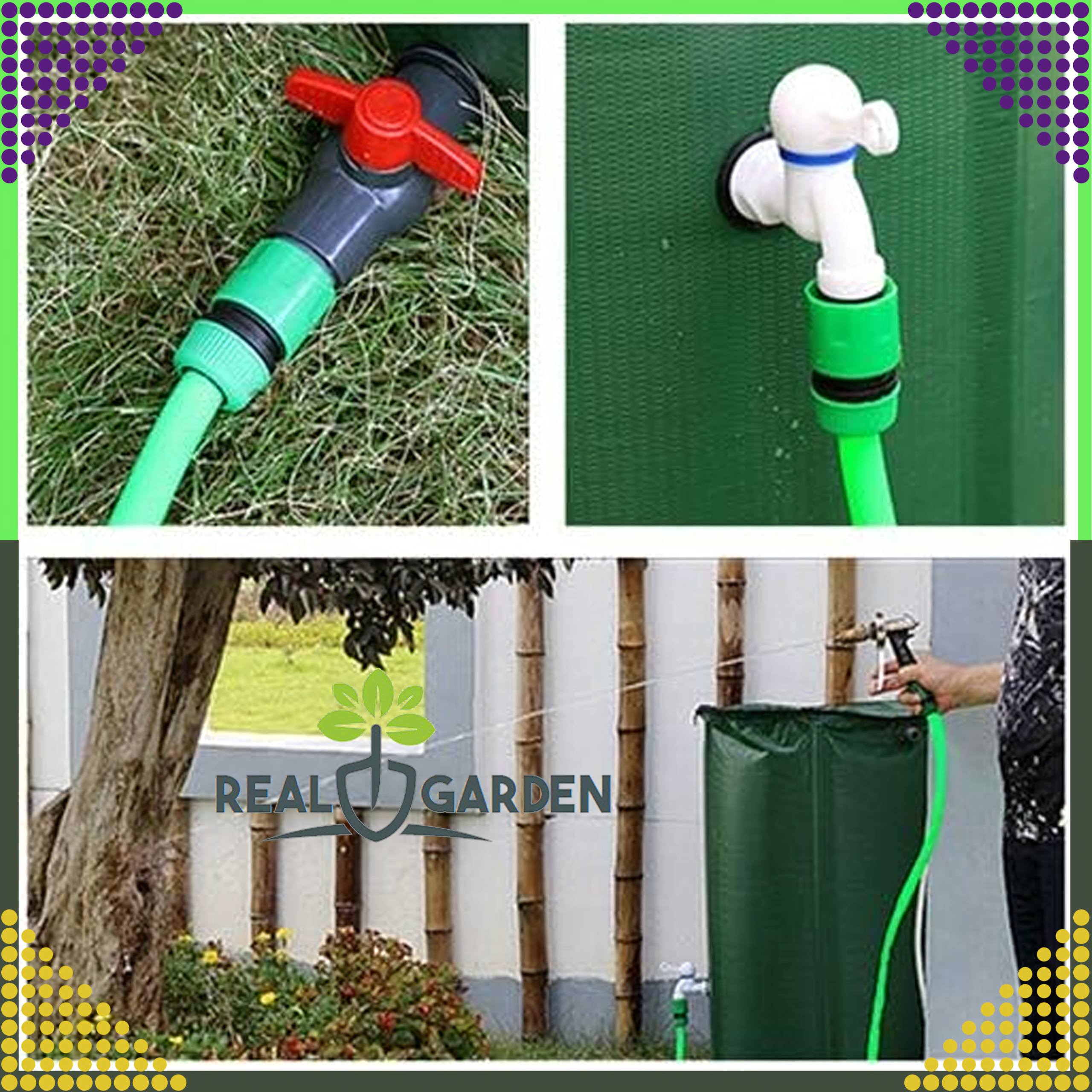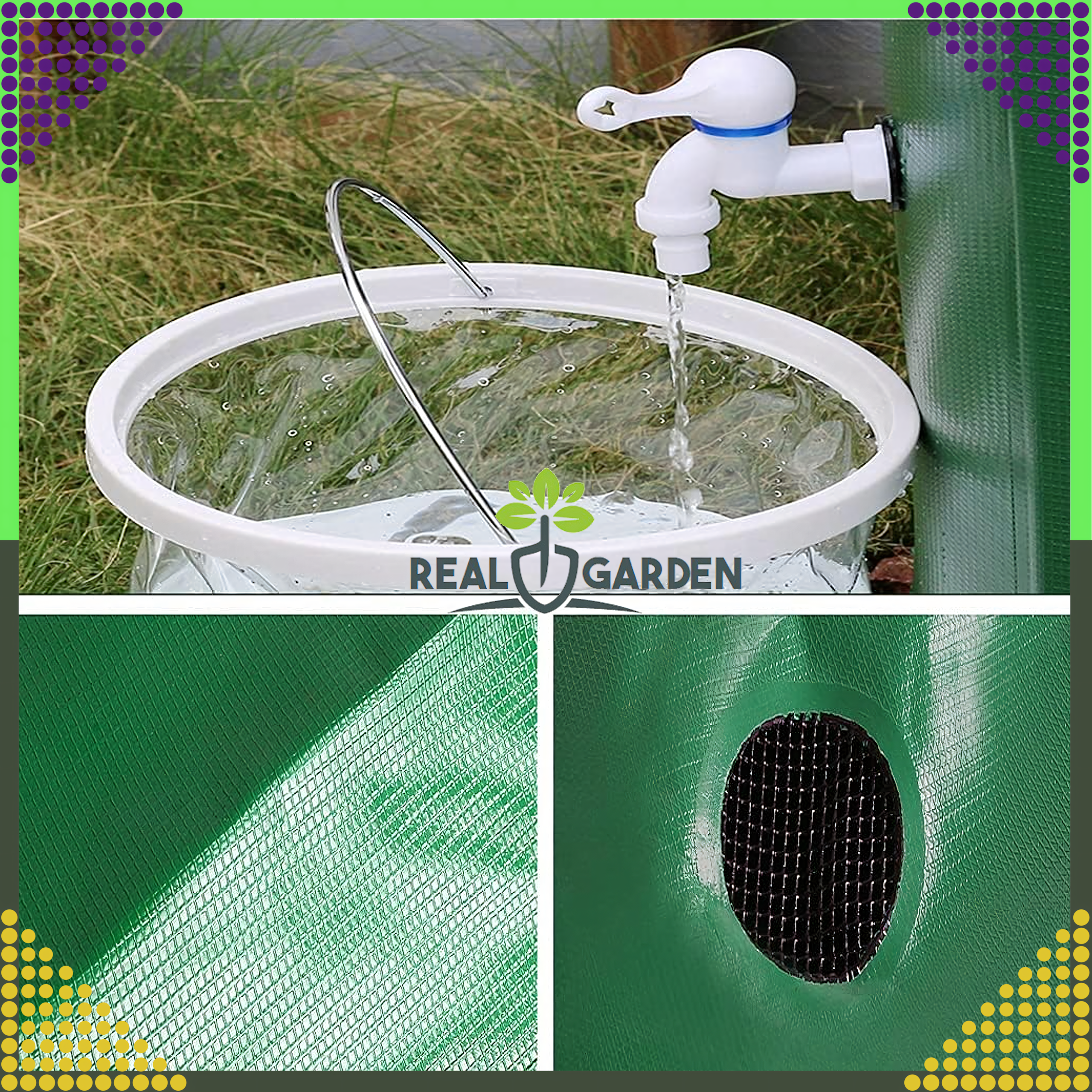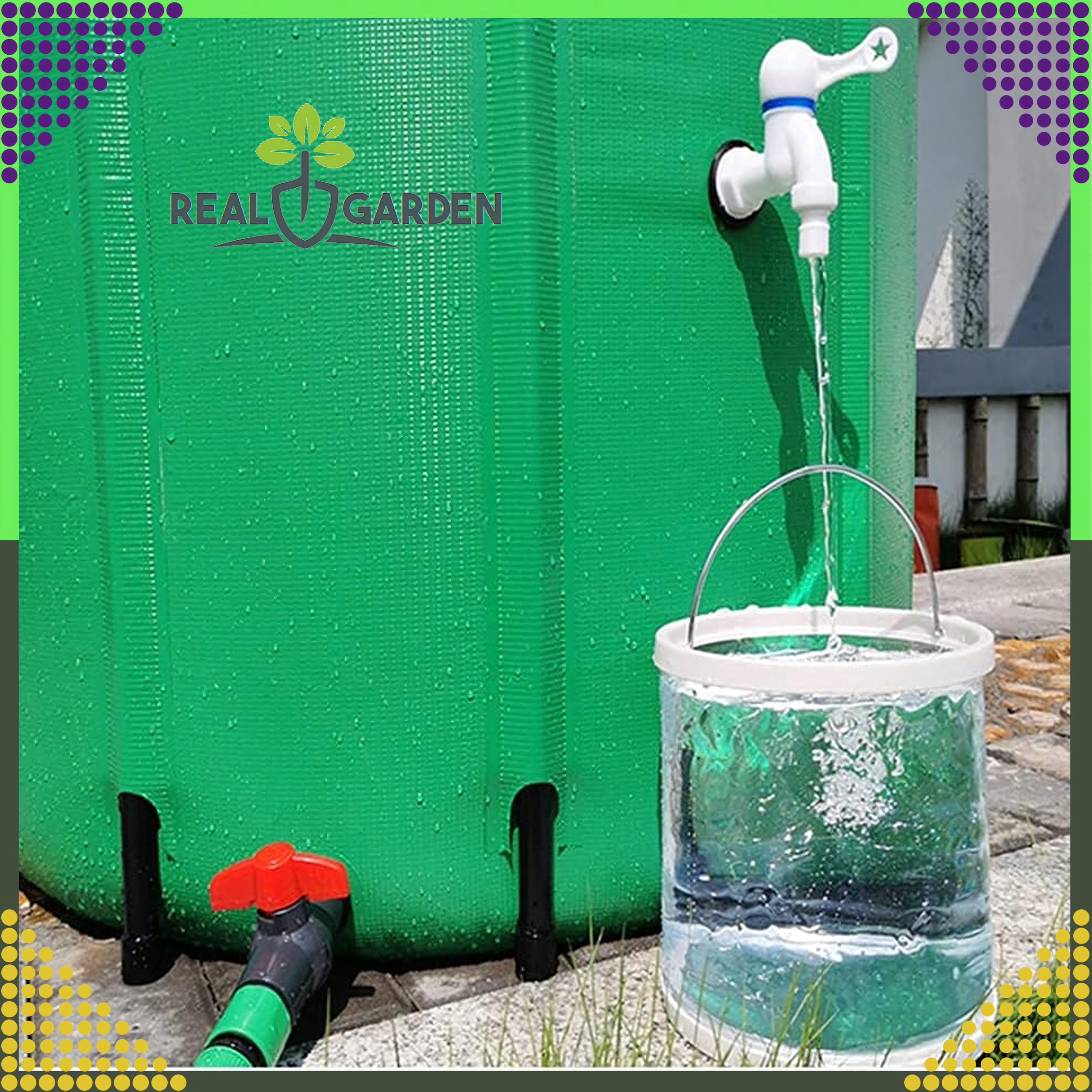Składany, elastyczny zbiornik na deszczówkę z wbudowanym kranem i zaworem przelewowym. Przeznaczony do zbierania wody spływającej np. z rynien, której można następnie użyć np. do podlewania ogrodu, roślin doniczkowych czy mycia samochodu.