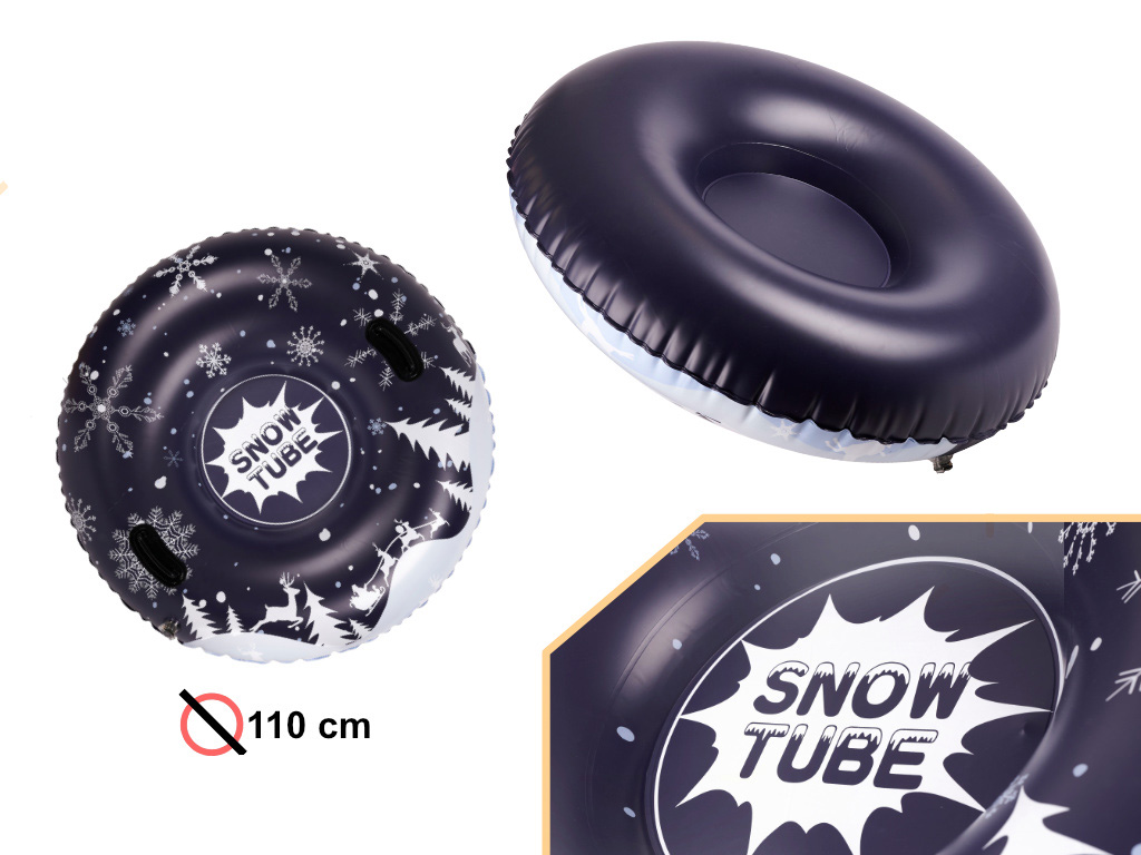 Rewelacyjne sanki dmuchane na śnieg. Super alternatywa dla tradycyjnych sanek. Zachęcą każde dziecko do zimowych szaleństw na śniegu. Z dwóch stron ślizgacza umieszczono rączki do trzymania. Max waga: do 100kg. Średnica: 110cm. Wym. opakowania: 36x33x4cm.