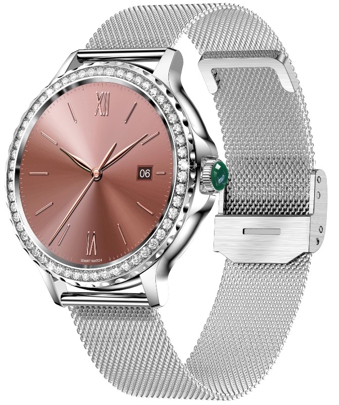 Dotykasz prostokątnego wyświetlacza MULTIdotyk TFT IPS full display i jednym ruchem wybierasz tarczę, która dziś najlepiej oddaje Twój nastrój – klasyczna elegancja czy odrobina nowoczesnego minimalizmu? Cyrkonie na kopercie delikatnie migoczą przy każdym ruchu, dodając subtelnego, biżuteryjnego uroku.