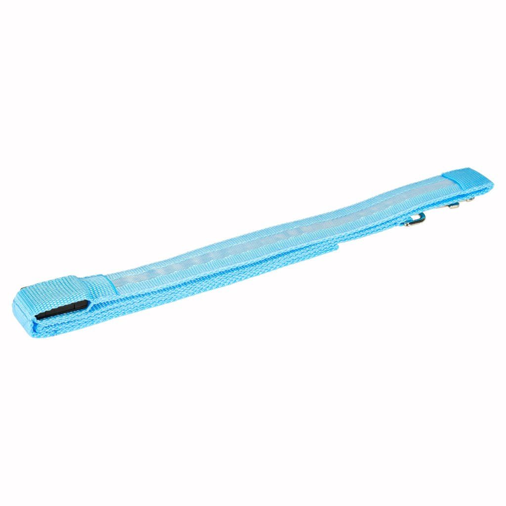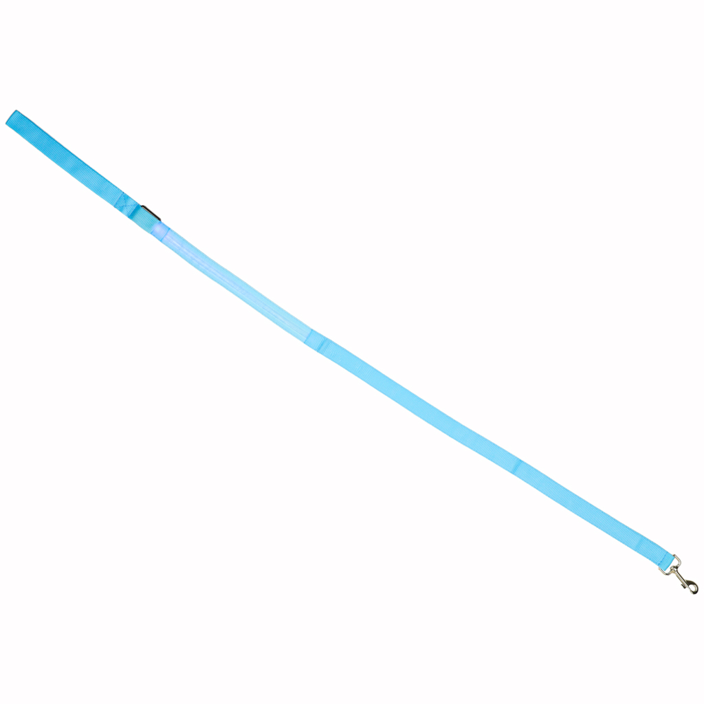 Święcąca smycz dla psa. Zapewnia bezpieczeństwo dla psów i ich właścicieli podczas wieczornych spacerów dzięki wbudowanemu paskowi LED. Kolor: niebieski. Zasilanie: baterie. Ilość trybów: 3. Regulacja: nie. Wymiary: 2,5cm x 120cm.