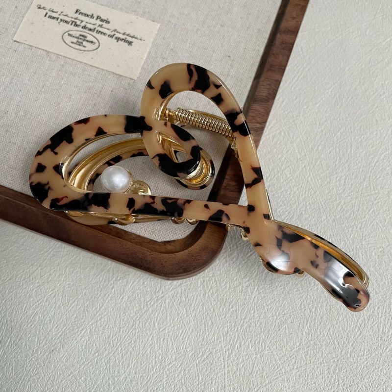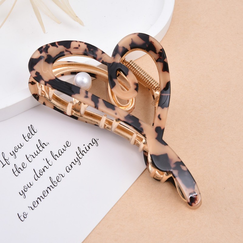 Spinka do włosów, klamra metalowa masa perłowa panterka XL 12x6cm SP342PAN