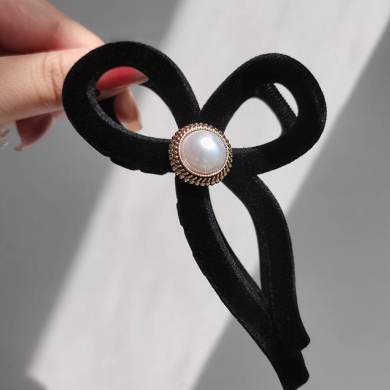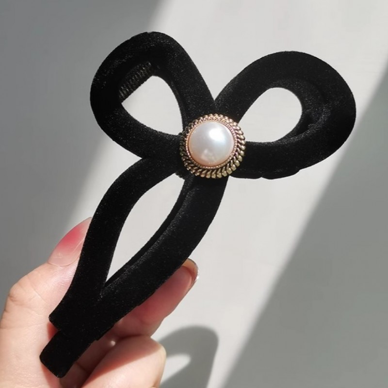 Spinka do włosów, klamra Vintage velvet czarna z perłą XL 11x6cm SP336