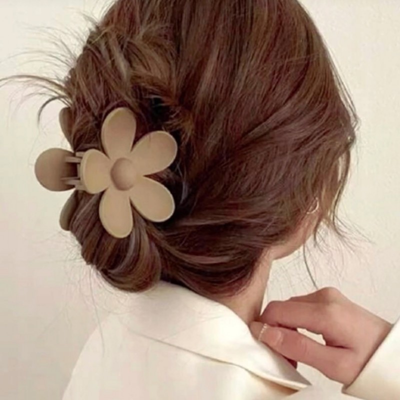 Spinka do włosów klamra XL kwiat beżowa 7×7,5 cm SP152K