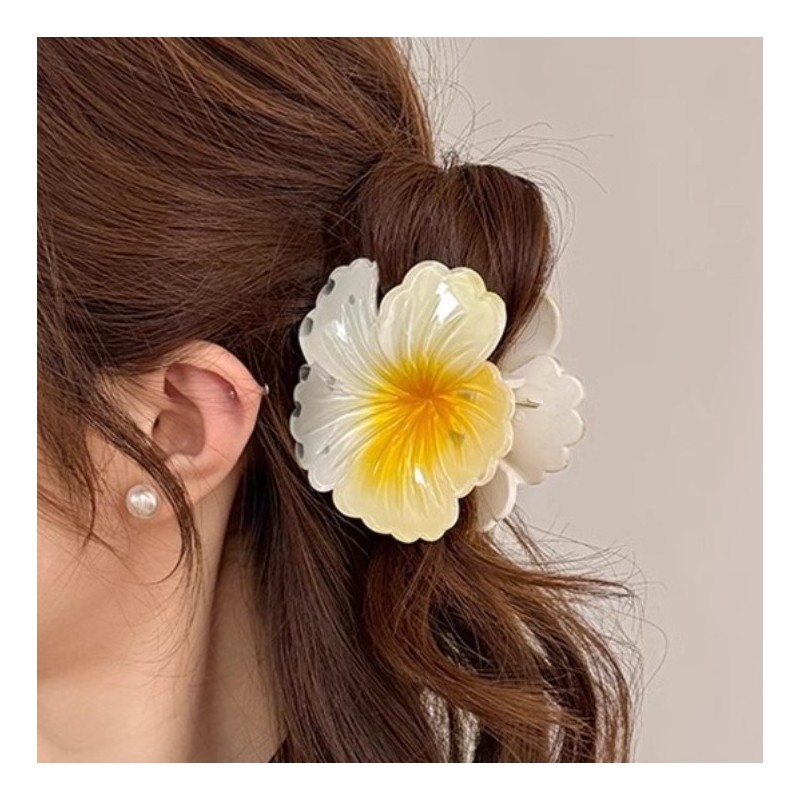 Spinka do włosów klamra XL kwiat HIBISKUS OMBRE żółta 7,5 x 7,5cm SP385