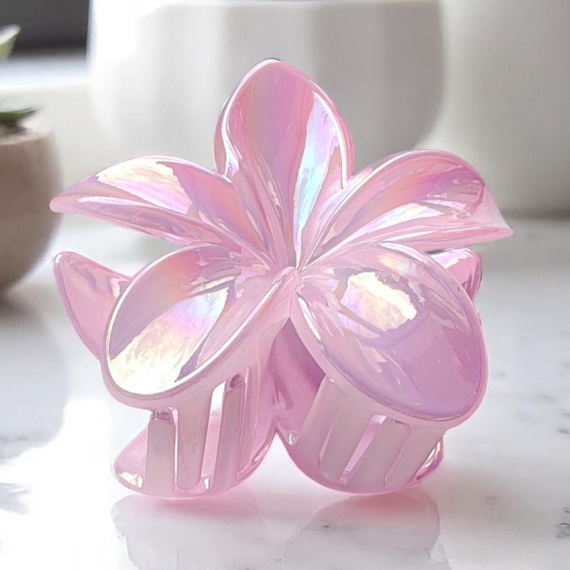 Spinka do włosów klamra XL kwiat, różowa opalizująca 7,5 x 8cm SP424