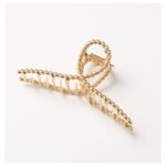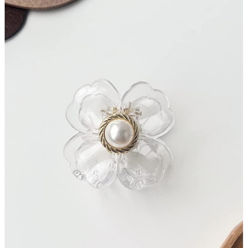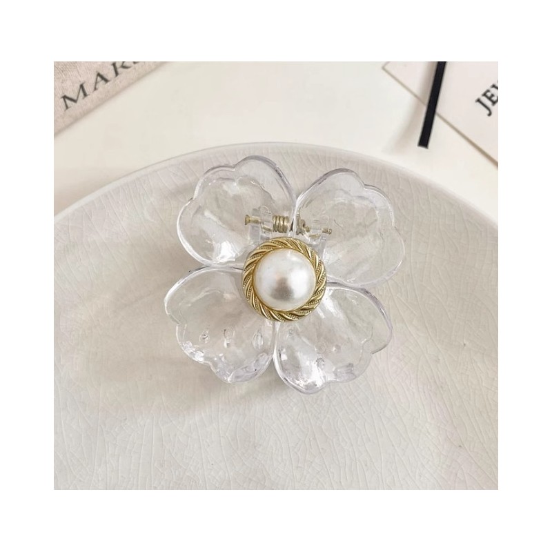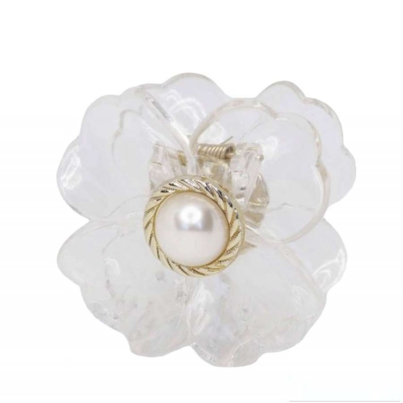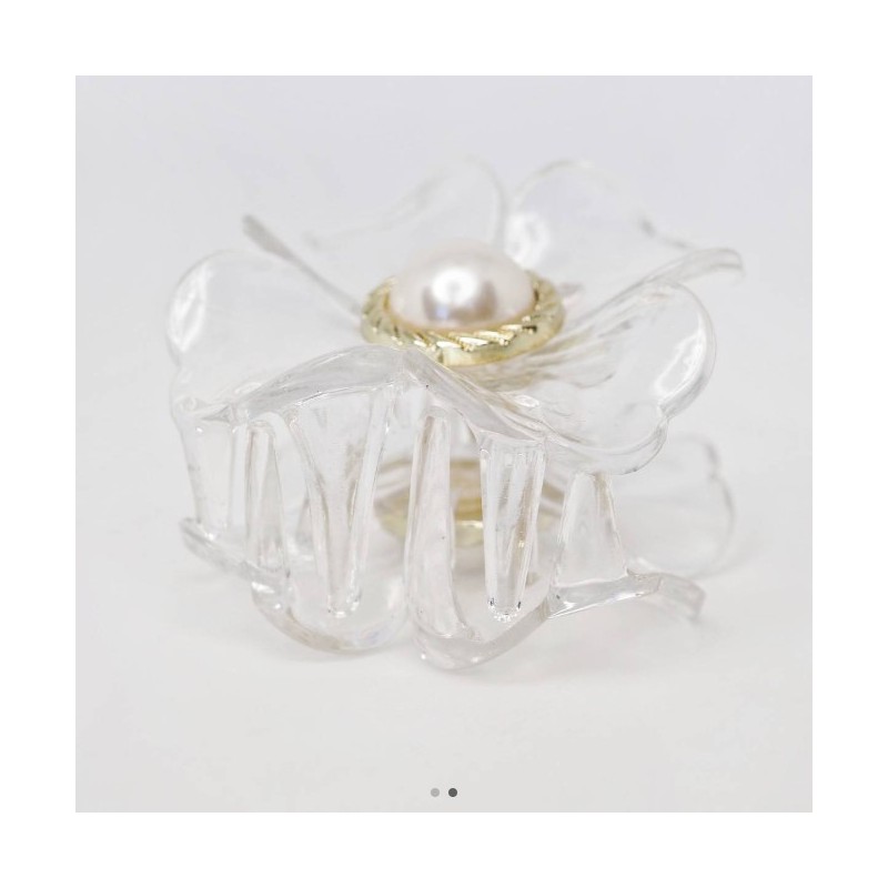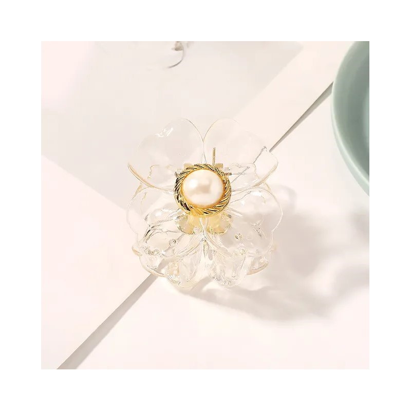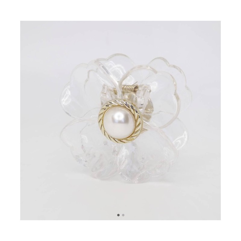 Spinka do włosów klamra XL kwiat transparentny złoty perła 6,5 x 6,5 cm SP271