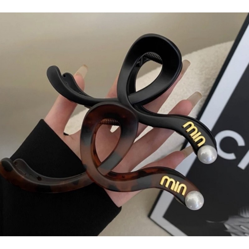 Spinka klamra do włosów z perłą XL 13×6 cm panterka SP354PAN