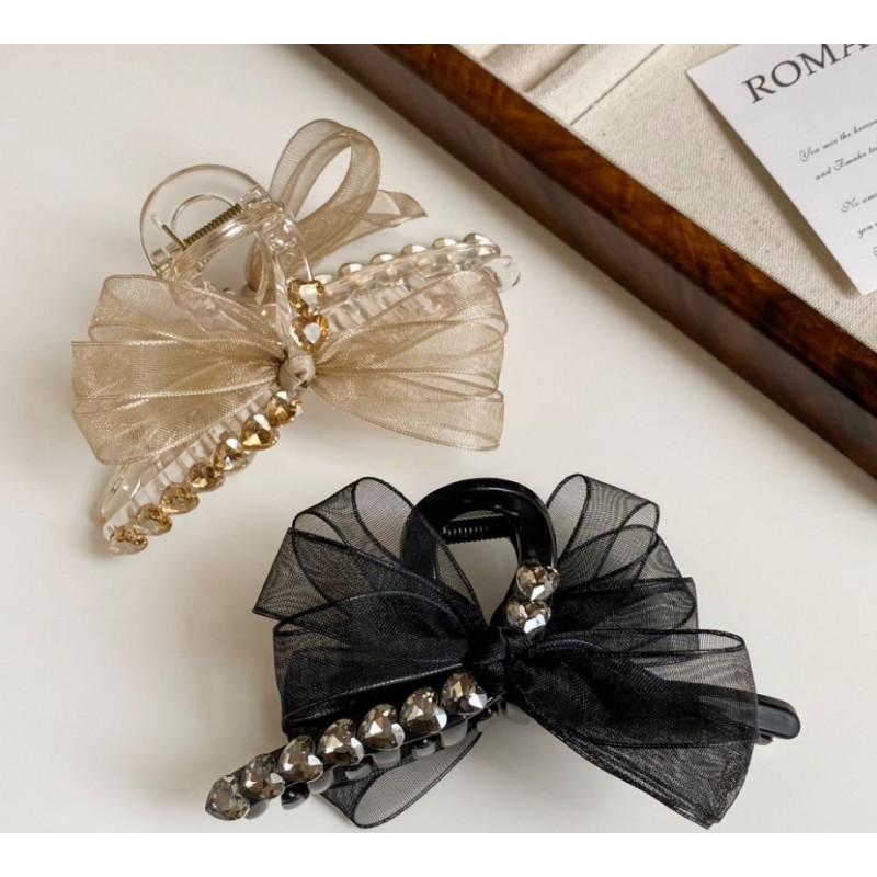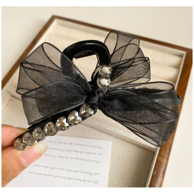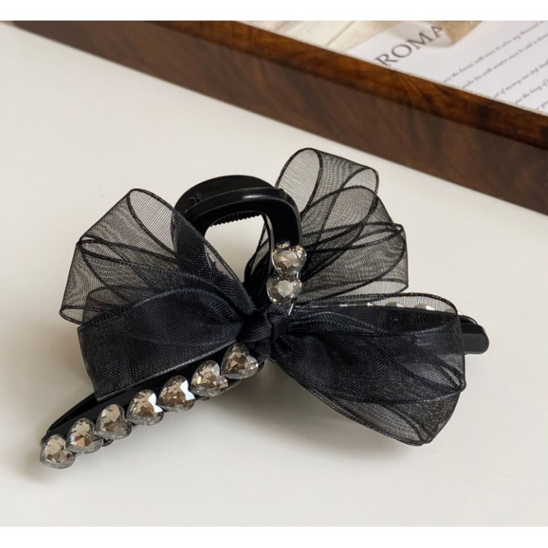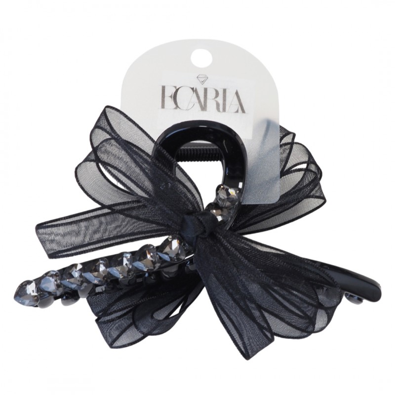 Spinka klamra do włosów z serduszkami i kokardą XL 11×5 cm czarna SP343CZ
