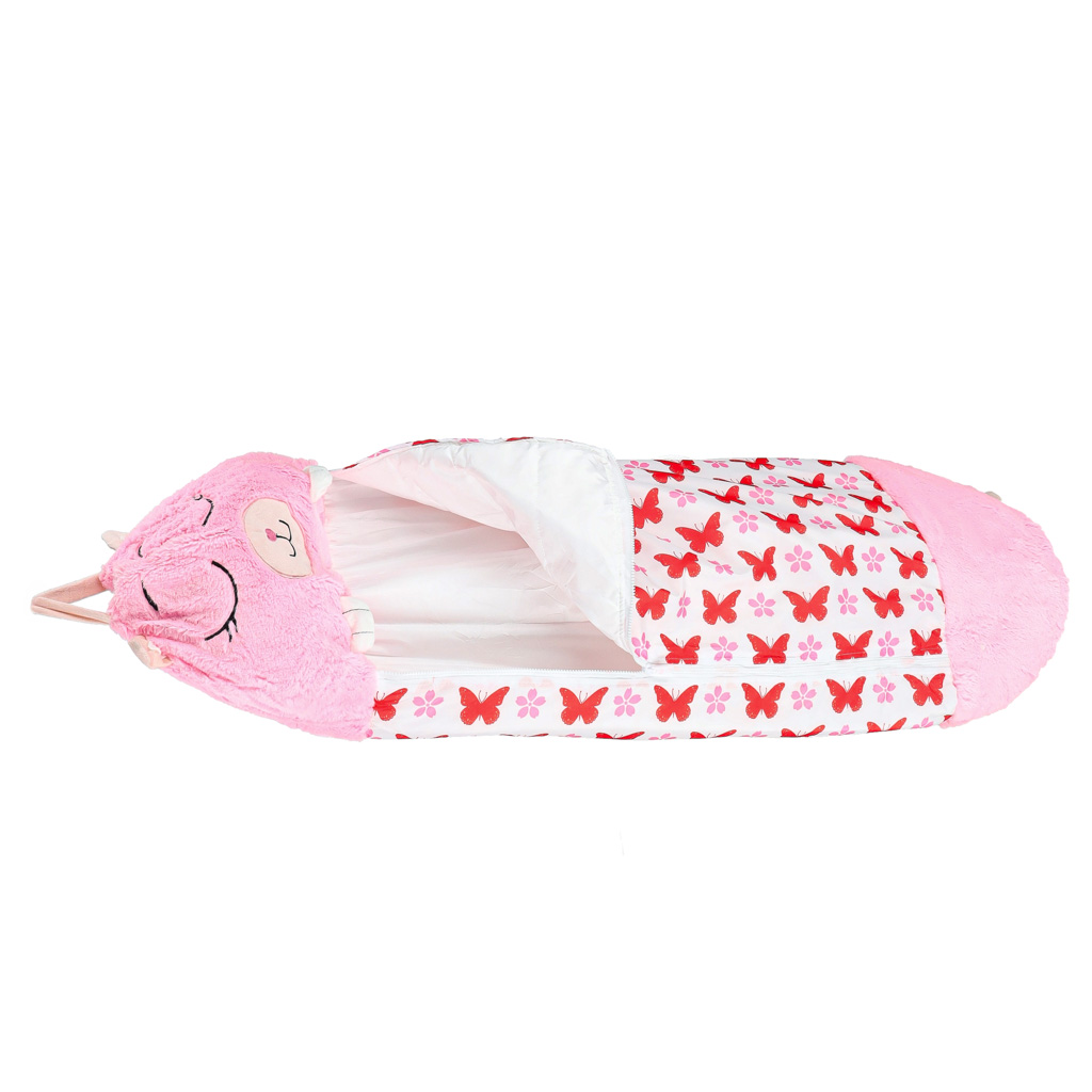 Śpiwór do spania dla dzieci turystyczny poduszka 2w1 125x50cm różowy