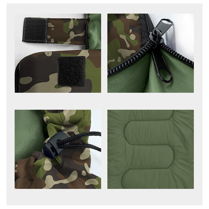 Specjalny kształt szwów zapobiega przemieszczaniu się wypełnienia wewnątrz śpiwora. Posiada zapięcia na rzepy, zamek i ściągacz. Specyfikacja: Wymiary: 210 cm (180cm + 30 kaptur) x 75 cm