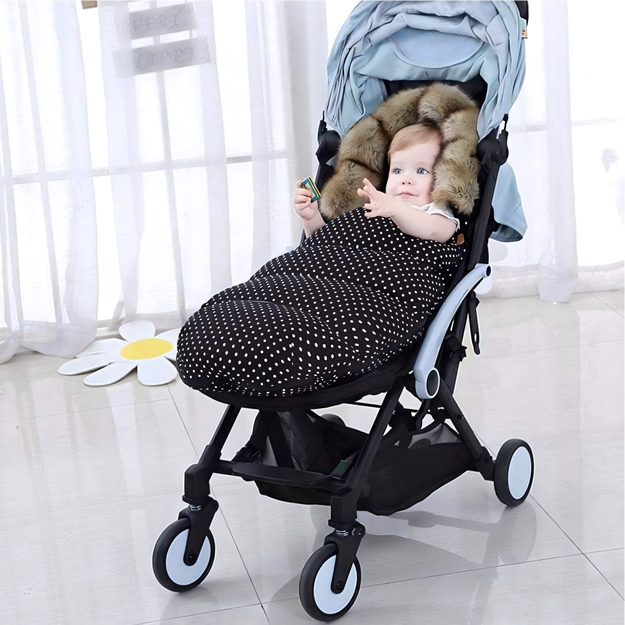 Nieprzemakalny, wiatroodporny śpiworek zimowy do gondoli/fotelika. Zapewnia ciepło, komfort podczas zimowych spacerów. Uszyty z wytrzymałej, odpornej na zabrudzenia tkaniny na zewnątrz oraz mięciutkiego mikropolarka w środku. Obszyty eko-futerkiem.