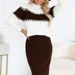 Elegancki komplet sweterkowy w kolorze czekoladowym to idealne połączenie wygody i stylu. Dwuczęściowy zestaw składa się z dopasowanej, prążkowanej spódnicy z praktycznymi kieszeniami oraz miękkiego swetra o luźniejszym kroju, który można nosić zarówno klasycznie, jak i lekko zbluzowany. Wykonany z wysokiej jakości dzianiny, zapewnia komfort noszenia i świetnie układa się na sylwetce. Ten komplet doskonale sprawdzi się w wielu stylizacjach, od eleganckich zestawień z butami na obcasie, po codzienny look z kozakami czy sneakersami. To propozycja, która łączy w sobie kobiecy szyk i swobodę na każdą okazję.