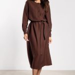 Klasyczna spódnica midi z wysokim stanem pięknie podkreśla talię i optycznie wydłuża sylwetkę. Szeroki pas z wiązaniem z tyłu dodaje kobiecego charakteru, a rozkloszowany dół układa się lekko i swobodnie, zapewniając komfort noszenia. Długość za kolano sprawia, że spódnica jest uniwersalna, świetnie sprawdzi się zarówno w codziennych stylizacjach, jak i eleganckich zestawieniach. Minimalistyczny fason daje wiele możliwości kombinacji, od klasycznych koszul po luźne swetry i topy.