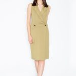 Spódnica midi we wzory w kontrafałdy, bez kieszeni, bez podszewki, typu A, zapinana z boku na suwak. Na lewej nodze, asymetryczne, eleganckie rozcięcie.