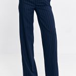 Spodnie bootcut z krytym guzikiem prążek SD103 Navy – Nife