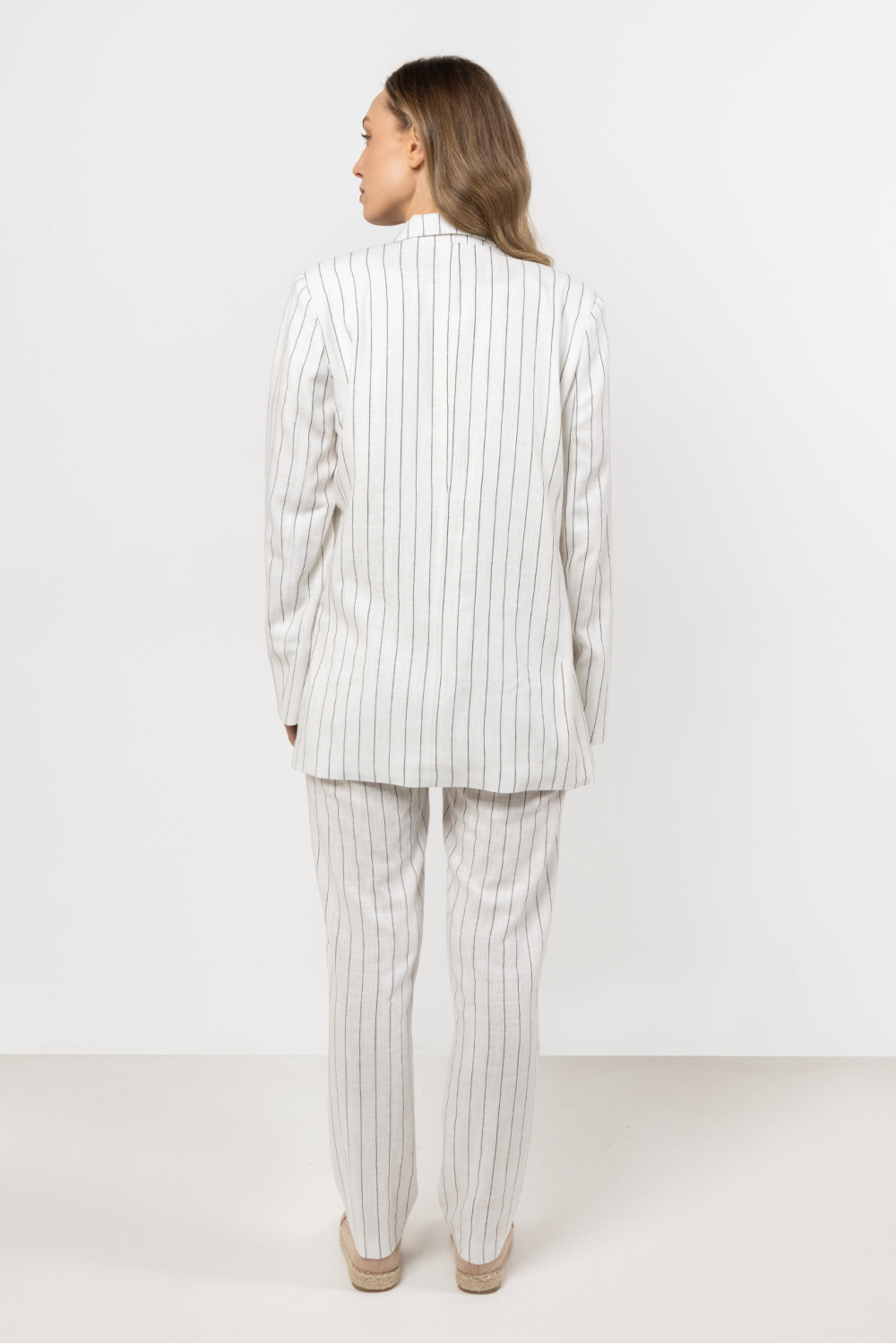 Te spodnie to idealne połączenie stylu i wygody. Zwężany fason subtelnie podkreśla sylwetkę, a przewiewny len zapewnia komfort przez cały dzień. Zapięcie na guzik i suwak nadaje im elegancji, a delikatne paski sprawiają, że pasują zarówno do codziennych, jak i formalnych stylizacji. Połącz lniane spodnie z kamizelką lub marynarką z tej samej tkaniny, a stworzysz elegancki letni look.