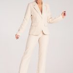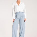Eleganckie spodnie z wysokim stanem. Luźnym, prosty krój. Elastyczną gumkę z tyłu. Spodnie z praktycznymi kieszeniami i szlufkami na pasek.