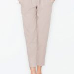 Spodnie damskie z ozdobnym marszczeniem w pasie i szarfą do wiązania. Po bokach kieszenie wsuwane. Spodnie zapinane na zamek.