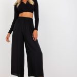Wiskozowe spodnie z wysokim stanem, gumka w pasie. Spodnie z szerokimi nogawkami, ozdobny pasek do wiązania.