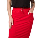 Spodnie dresowe z gumką w pasie, po bokach kieszenie wsuwane. Spodnie z wysokim stanem, w pasie wiązanie.