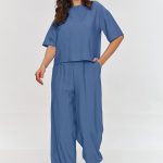 Dresowy komplet to idealna propozycja dla osób ceniących wygodę i styl w codziennych, casualowych stylizacjach. Dres składa się z luźnej bluzy oraz szerokich spodni, co zapewnia maksymalny komfort noszenia. Całość jest wykonana z miękkiego, przyjemnego w dotyku materiału, który idealnie sprawdzi się na chłodniejsze dni. Bluza ma klasyczny, prosty krój z długimi rękawami i lekko opadającym ramieniem. Wykończona jest okrągłym dekoltem. Spodnie mają szerokie nogawki, co nadaje całości modny, oversizeowy charakter a przeszycie wzdłuż nogawek optycznie wydłuża nogi. Elastyczny pas w talii zapewnia wygodne dopasowanie. Taki zestaw idealnie sprawdzi się na codzienne wyjścia, zakupy czy spotkania z przyjaciółmi. Ten komplet to połączenie funkcjonalności i stylu, idealne dla osób, które chcą czuć się wygodnie, nie rezygnując przy tym z modnego wyglądu.
