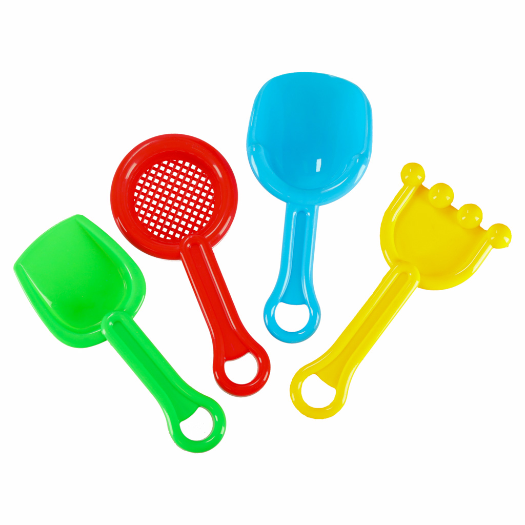 Zestaw do piaskownicy: foremki do piasku (6 szt.), łódka (24×14,5×7 cm), pistolet na wodę (21-38×3 cm), sitko, grabki (14,5 cm), 2 łopatki. Zabawki do piasku dla dzieci, do zabawy w piaskownicy, ogrodzie, wodzie, na plaży.