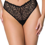 Seksowne stringi Maxine w całości wykonane z pięknej koronki w kolorze granatowym. Finezyjne połączenie boczków malutkimi kółeczkami, dodaje uroku modelowi. Klinek bawełniany.