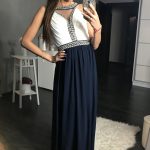 Długa sukienka typu syrena w kolorze granatowym. Wierzchnia warstwa sukienki jest z koronki. Sukienka zapinana na kryty zamek. Idealna propozycja na wieczorne przyjęcie.