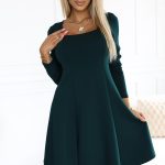 Trapezowa sukienka marki Numoco to wygodna i stylowa propozycja na co dzień. Sukienka ma długość przed kolano oraz długie rękawy, a jej krój zapewnia swobodę ruchu. Wykonana z elastycznego, grubszego beżowego materiału, doskonale sprawdzi się w chłodniejsze dni. Jest to polski produkt, który łączy modny wygląd z komfortem noszenia.