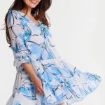 Sukienka z szyfonu na elastycznej podszewce, ozdobiona na dole dwiema falbanami, asymetryczna. Dekolt z tyłu również jest ozdobiony falbaną i mocno wycięty. Sukienka ma gumkę wszytą w pasie, w celu dopasowania do sylwetki.