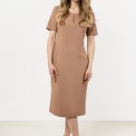 Ta sukienka to idealny wybór na wiele okazji. Dopasowany, ołówkowy krój podkreśla sylwetkę, a asymetryczny dół z ozdobnym detalem nadaje stylizacji oryginalnego charakteru. Krótkie rękawy i okrągły dekolt zapewniają klasyczny wygląd, a kryty zamek i rozcięcie z tyłu gwarantują komfort noszenia.