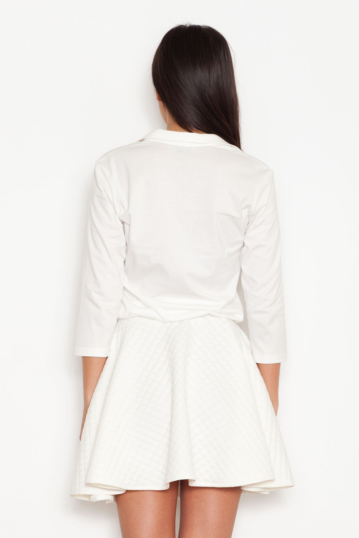 Sukienka ecru z obniżonym stanem, kołnierzyk, zapięcie na zatrzaski, pikowana spódnica, w pasie gumka, dzięki której można regulować długość sukienki.