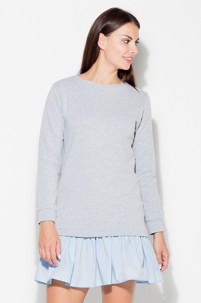 Model z długim rękawem wykonany z bawełny dodaje komfortu noszenia. Minimalistyczny krój w połączeniu z falbanką nadaje wdzięku i delikatności w codziennym użytkowaniu. Model świetnie sprawdzi się w wersji z tenisówkami.