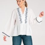 Dzianinowa sukienka midi z kołnierzykiem, utrzymana w dopasowanym kroju, który podkreśla sylwetkę. Dekolt w serek nadaje całości subtelnej elegancji. Rękawy wykończone falbankami dodają lekkości, a delikatnie rozkloszowany dół zapewnia swobodę i kobiecy charakter.