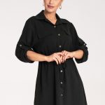 Sukienka midi z siatki z krótkimi rękawami typu motylek. Model z wszytymi miseczkami oraz dekoltem w serek. Dół rozkloszowany z podszewką. Pod biustem szerokie odcięcie podkreślające talię. Zapinana z tyłu na zamek.