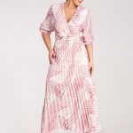 Sukienka maxi z luźnymi, półprzezroczystymi rękawami przypominająca pelerynę z plisowanyn dołem. Dekolt w kształcie litery V, elastyczna talia podkreślająca sylwetkę. Podszewka z wiskozy.