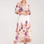 Sukienka maxi z luźnymi, półprzezroczystymi rękawami przypominająca pelerynę z plisowanyn dołem. Dekolt w kształcie litery V, elastyczna talia podkreślająca sylwetkę. Podszewka z wiskozy.