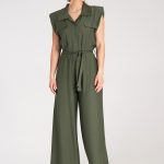 Sukienka midi, góra marszczona z dekoltem hiszpańskim. Ozdobiona drewnianymi guzikami i elastycznym pasem podkreślającym talię.